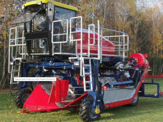 Wspólnie z konstruktorami Poclain Hydraulics dobraliśmy kompletny napęd hydrostatyczny jazdy do nowej wersji kombajnu do zbioru owoców. Napęd składa się z pompy układu zamkniętego oraz czterech silników dwubiegowych połączonych bezpośrednio z felgami kół. Synchronizację silników zapewnia nowy, czterosekcyjny dzielnik strumienia oleju serii FD-M4.