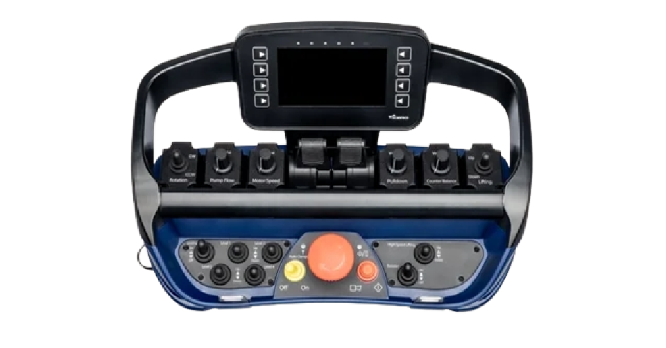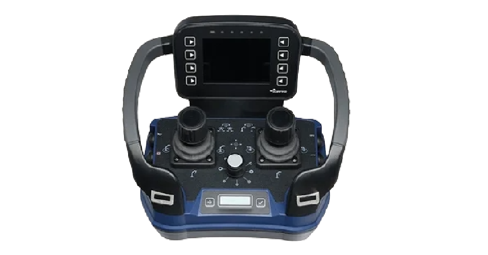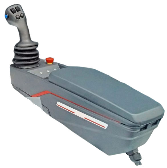 Wielofunkcyjny panel sterujący z joystickiem i podłokietnikiem do sterowania proporcjonalnymi blokami zaworowymi